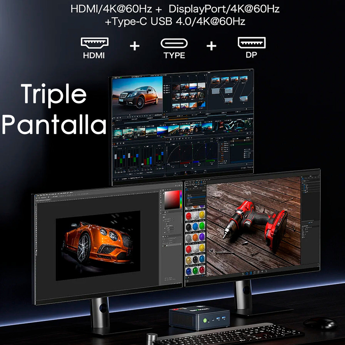 El sistema operativo Windows 11 Pro proporciona una experiencia fluida y moderna, ideal para quienes buscan familiaridad y nuevas funcionalidades. Con un diseño compacto que mide solo 4,8 cm de altura y 12,7 cm por lado, este mini PC es fácil de integrar en cualquier espacio de trabajo o hogar, sin ocupar mucho lugar.