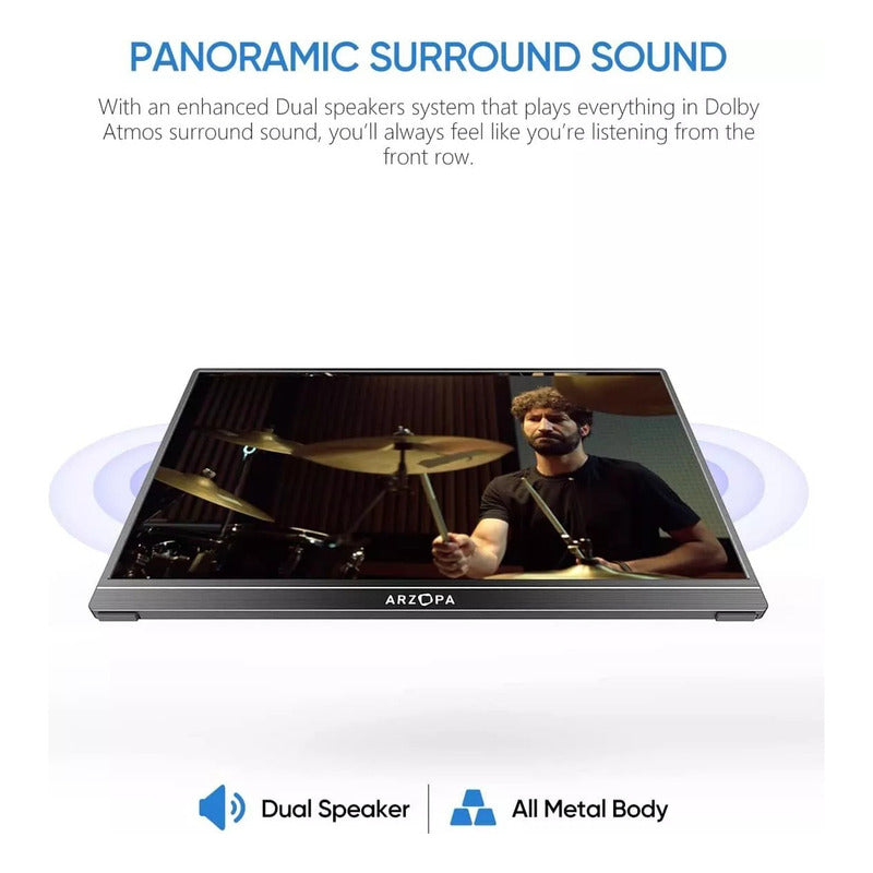 Segundo monitor El monitor portátil ARZOPA puede muy bien actuar como su segundo monitor y mejorar la eficiencia de su trabajo. Puede trabajar y realizar múltiples tareas simultáneamente mientras usa este monitor.