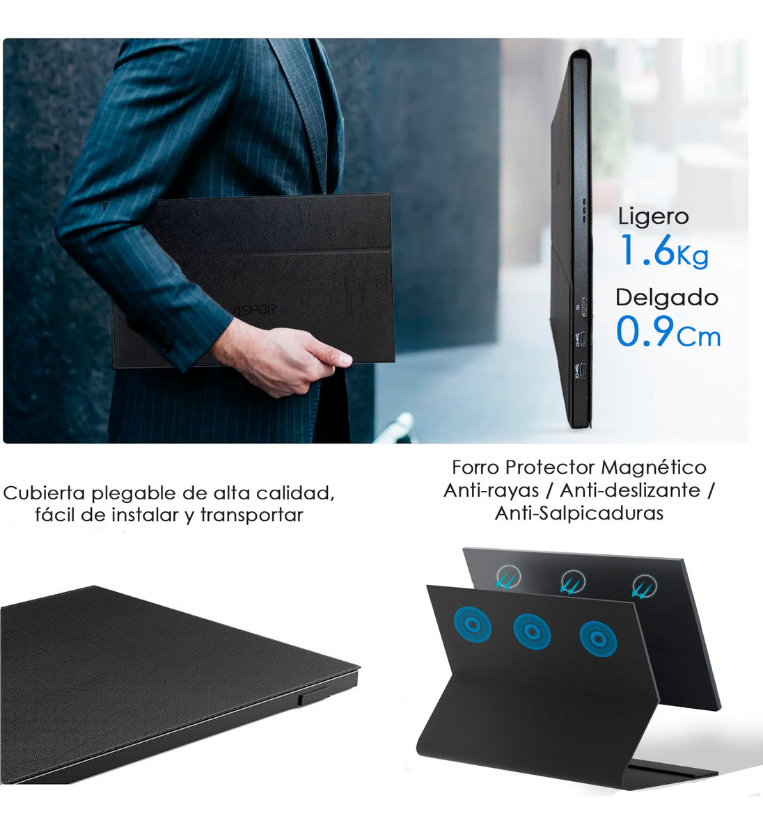 Descubre el Monitor Portátil Aspor 2025 de 18.5 pulgadas, una solución ideal para quienes buscan versatilidad y excelente calidad de imagen. Con una resolución Full HD de 1920 px x 1080 px y un brillo de 320 cd/m2, este monitor proporciona imágenes nítidas y vibrantes, perfecto para trabajar o disfrutar de contenido multimedia.