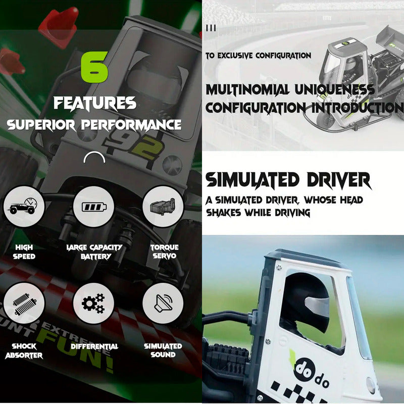 Calidad y durabilidad: el modelo de automóvil compacto y dinámico sin comprometer el diseño y el material ofrece una simulación impresionante como una carcasa de automóvil integrada, lo que te hace sentir como si fuera una motocicleta real. Una verdadera delicia para los amantes de los modelos de coches de deriva. Viene con un conductor simulado y varios accesorios de carreras para que juegues con familiares y amigos.