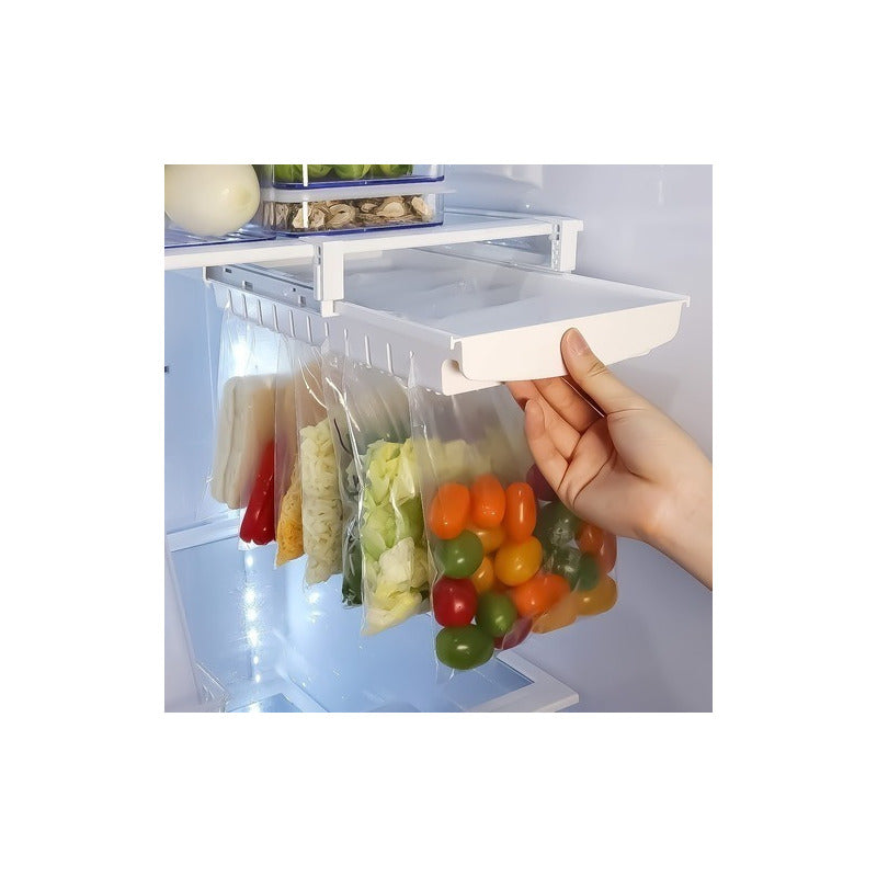 Organizador de bolsas para refrigerador tipo gaveta, Este organizador es ideal para verduras y frutas en bolsas las cuales van dentro del refrigerador en este organizador tipo gaveta, es de fácil instalación y uso.