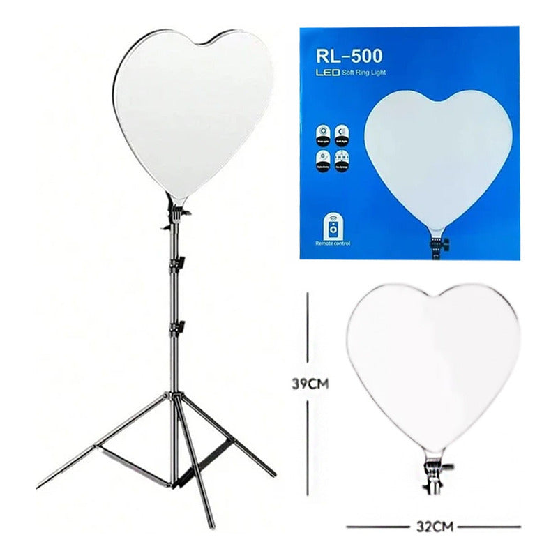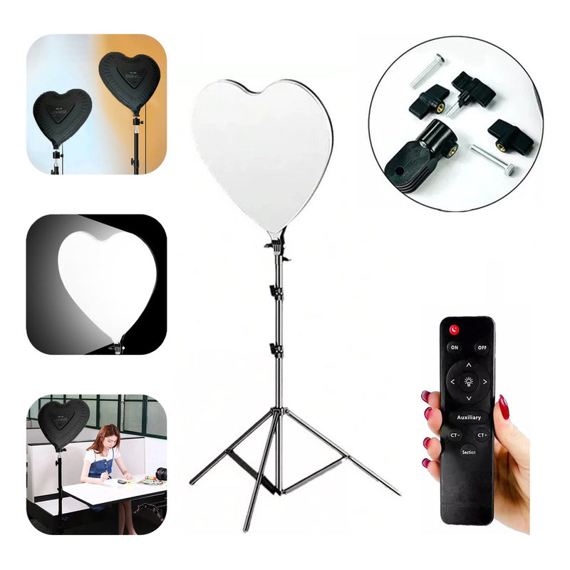 Panel Led en forma de corazón de 39CM con trípode de 2.10m y control remoto, ideal para grabar videos para tik tok, Instagram o Facebook, ya que cuenta con un buen sistema de iluminación de luz cálida, neutra y fría, con control remoto para regular los 3 modos de luz y su intensidad.