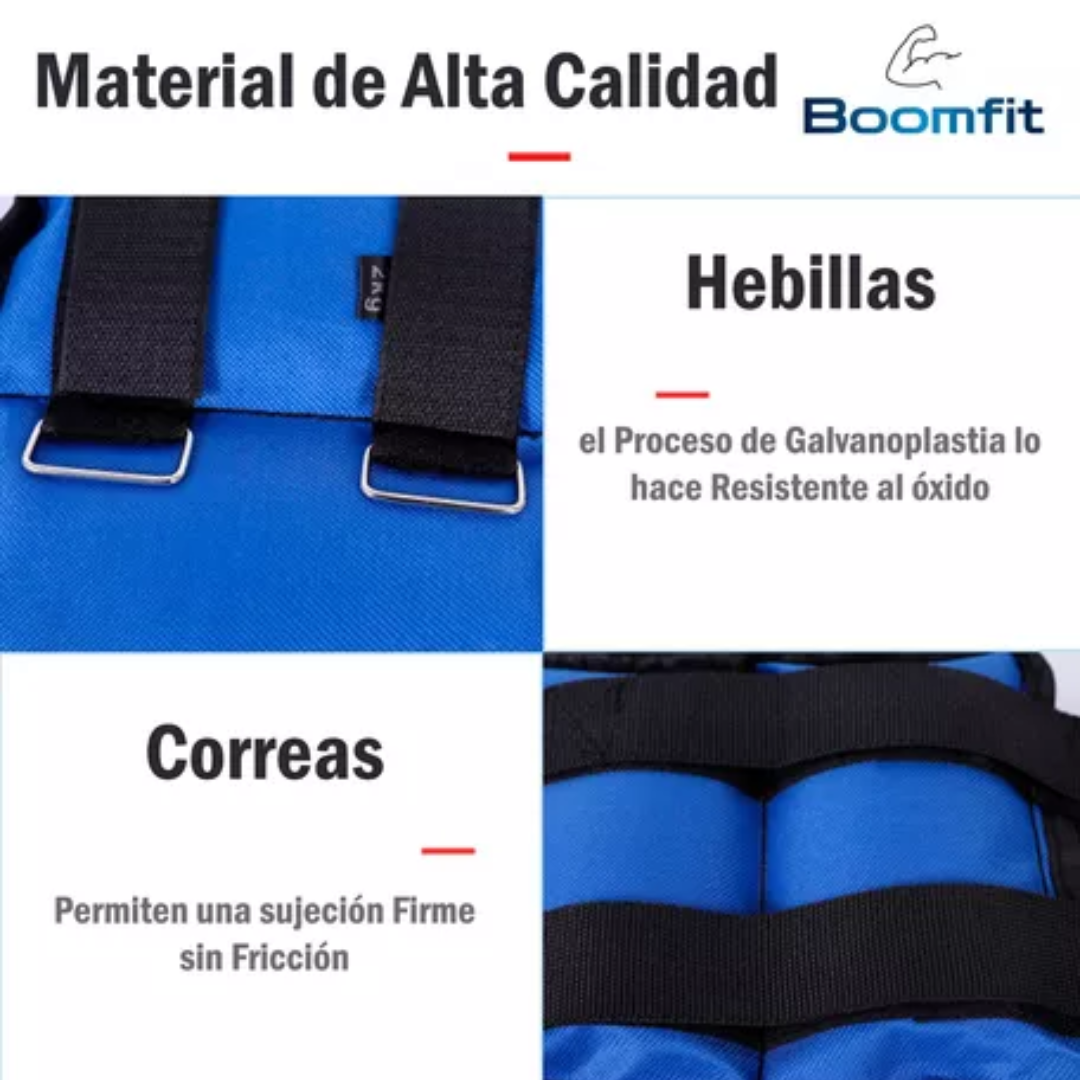 Las pesas tobilleras y de muñeca BoomFit son el complemento ideal para quienes buscan potenciar su rutina de ejercicios. Con un peso total de 6 kg, estas pesas están diseñadas para ofrecer resistencia adicional, ayudando a tonificar y fortalecer los músculos de las piernas y brazos. Su diseño cuadrado y su material de tela sintética con arena garantizan durabilidad y comodidad durante su uso.