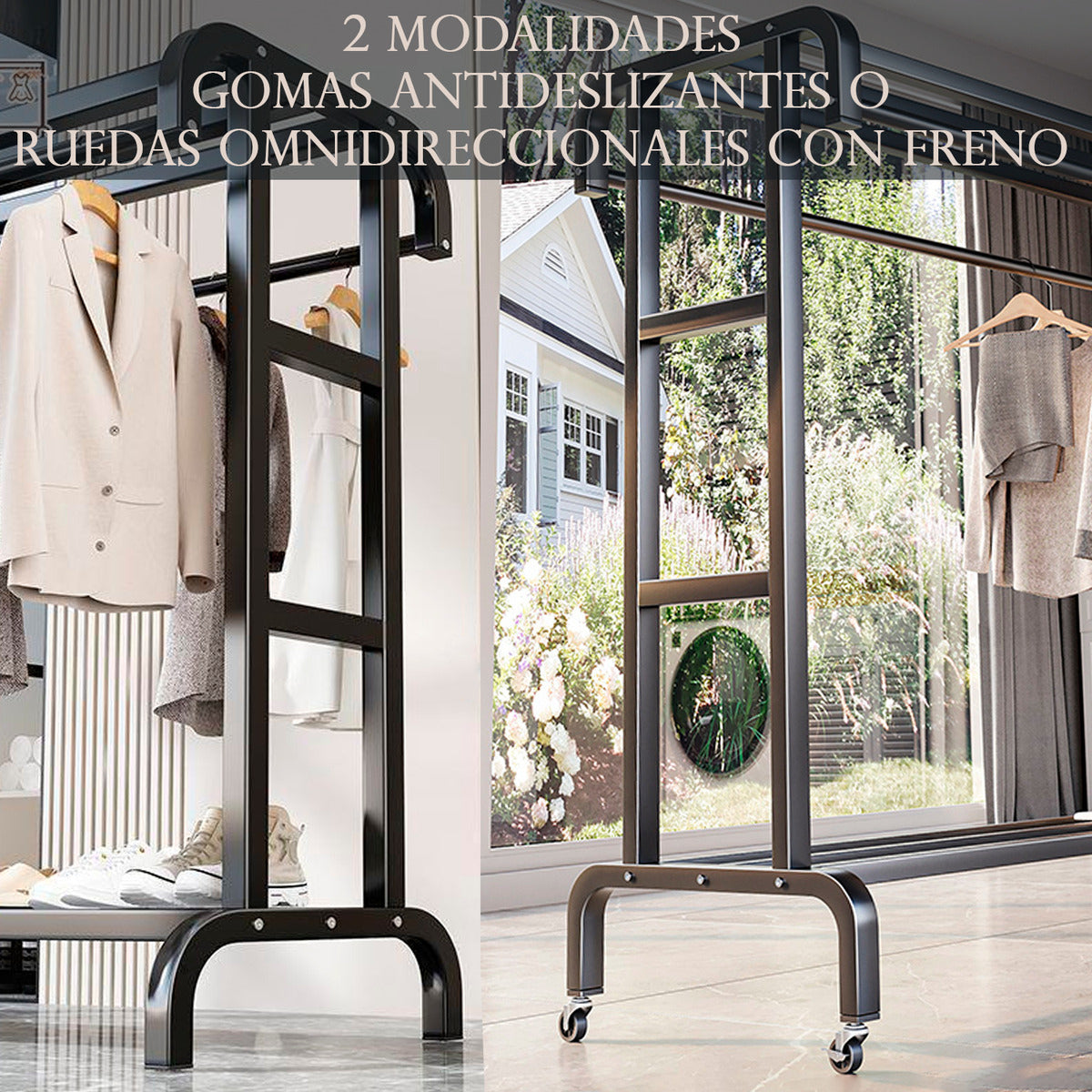 Perchero Organizador De Ropa Doble Con Ruedas 120cm Pro Negro