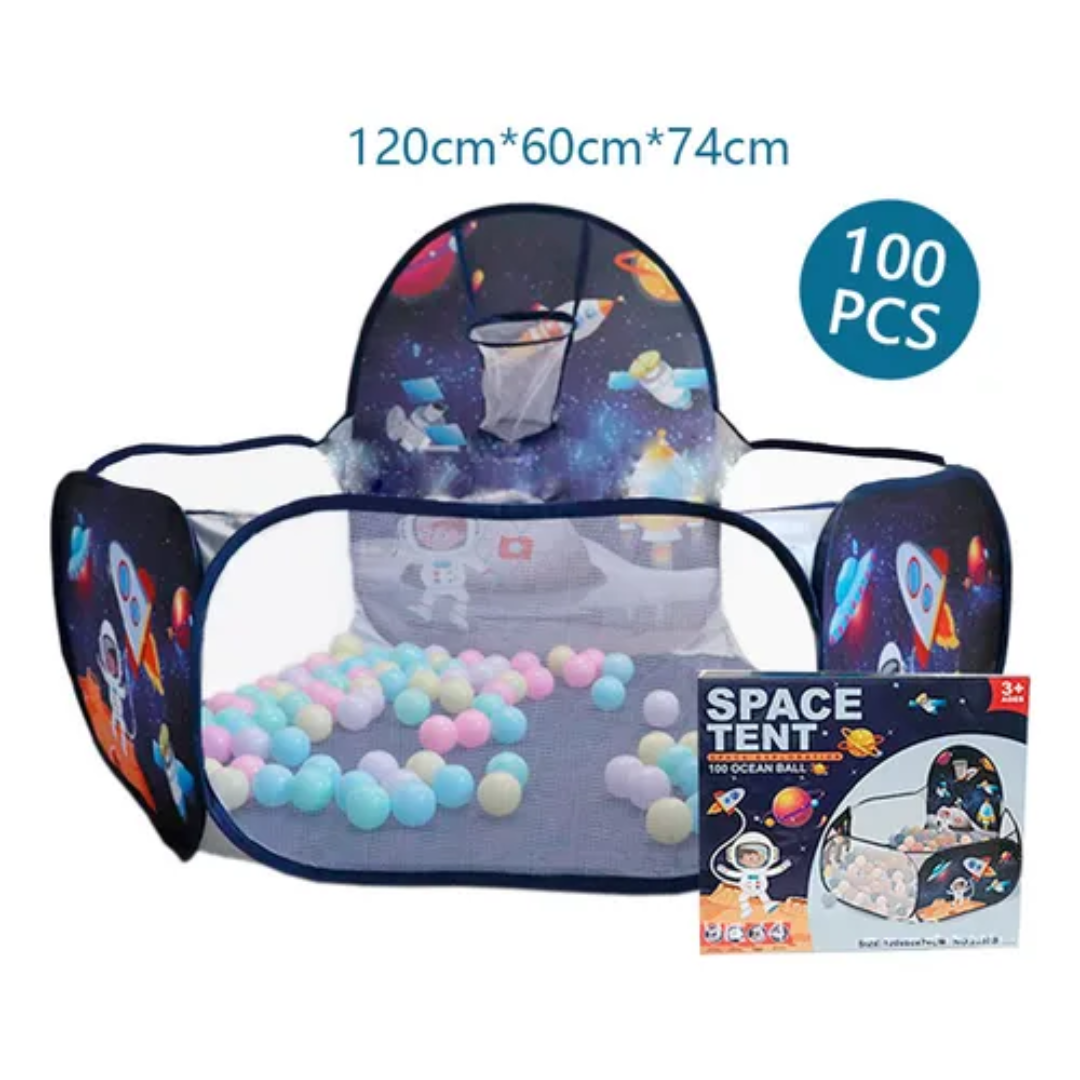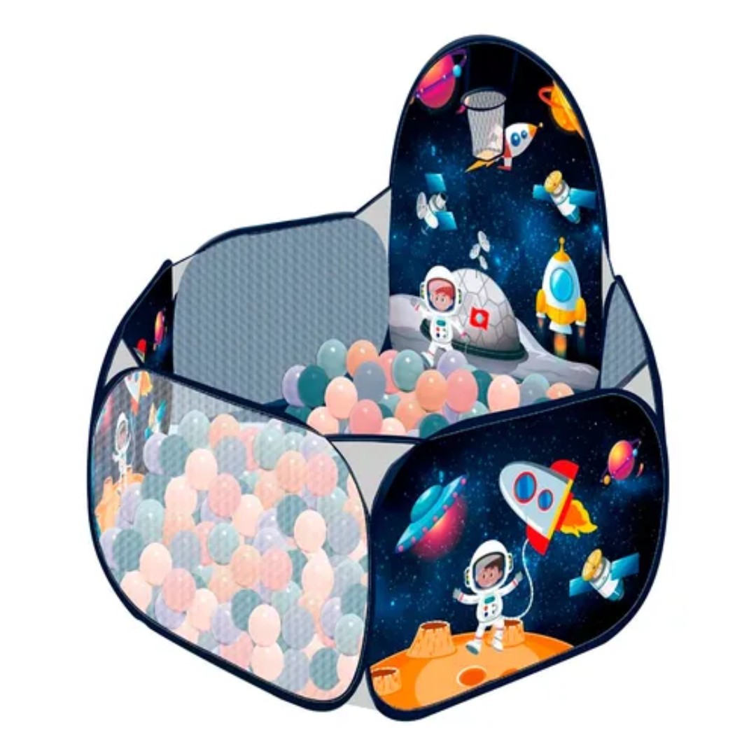Carpa con pelotas infantil de Espacio, ideal para incentivar las habilidades motoras y cognitivas de los niños, con este divertido castillo con pelotas plasticas