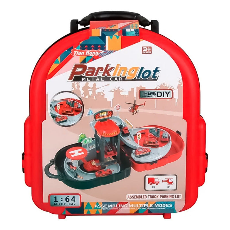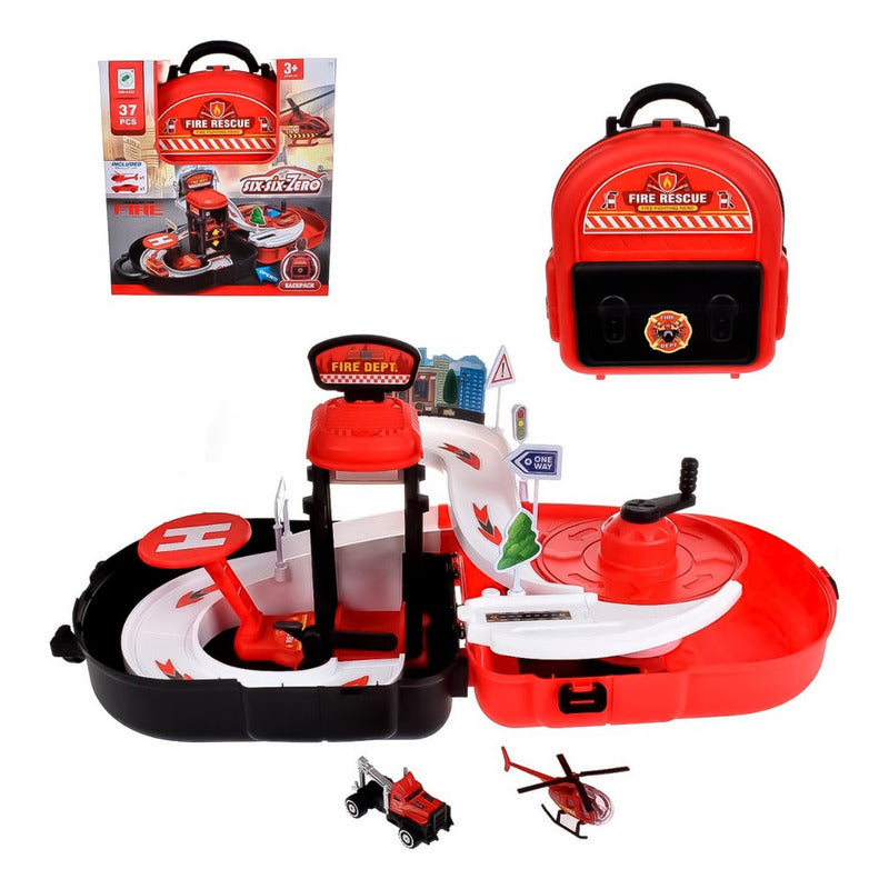 Pista Auto Mochila Estacion Bombero Juguete Helicoptero Grua