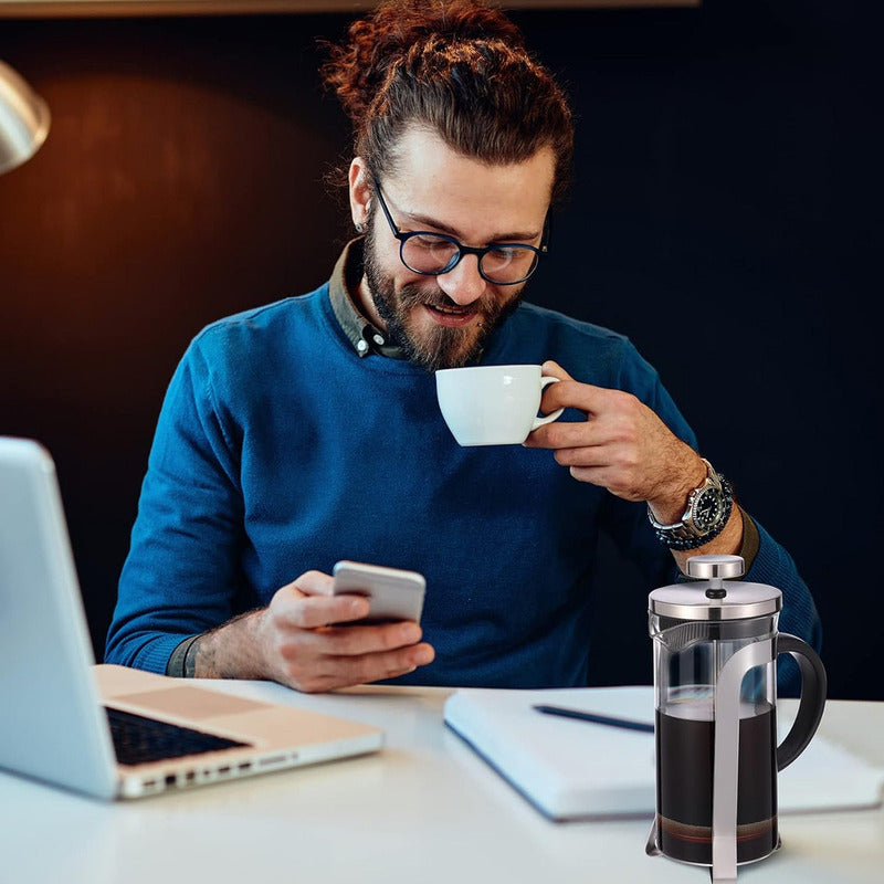 La prensa francesa conserva los aceites naturales que los filtros absorben, lo que te permitirá degustar un café de consistencia espesa y deliciosa.