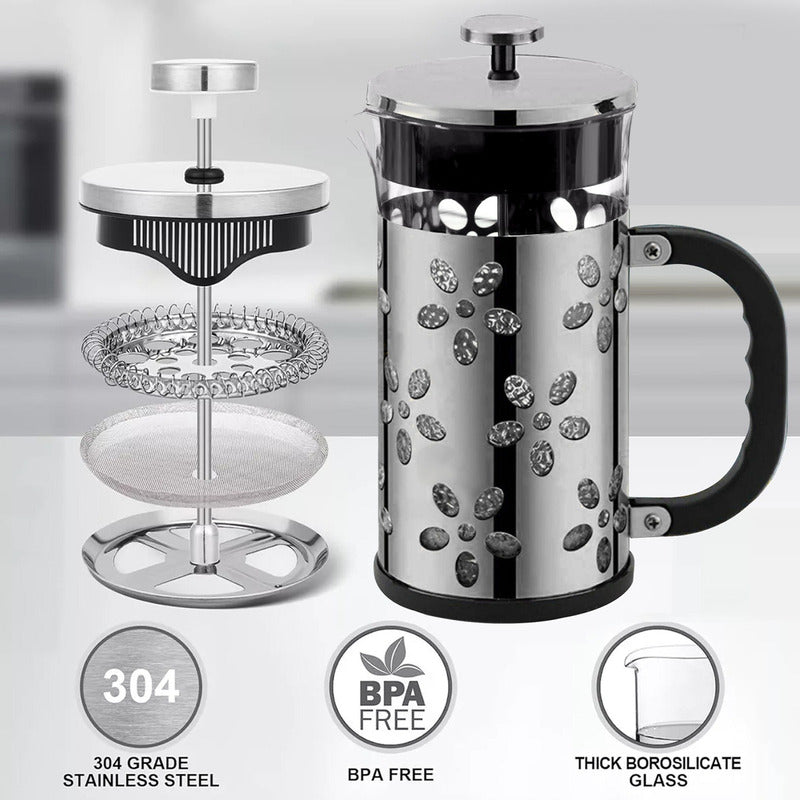 Prensa Francesa De Vidrio Y Metal Negro Cafetera 1 Litro