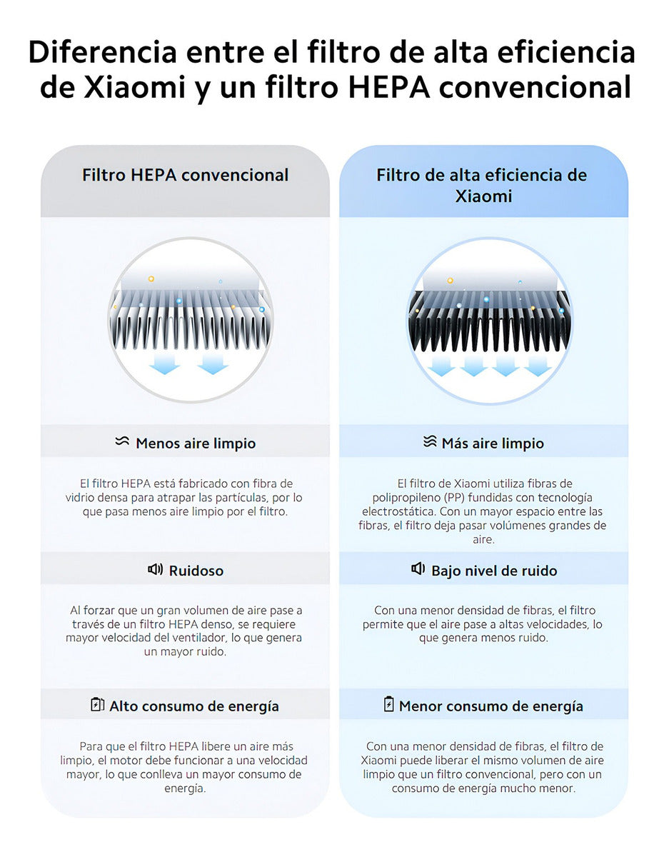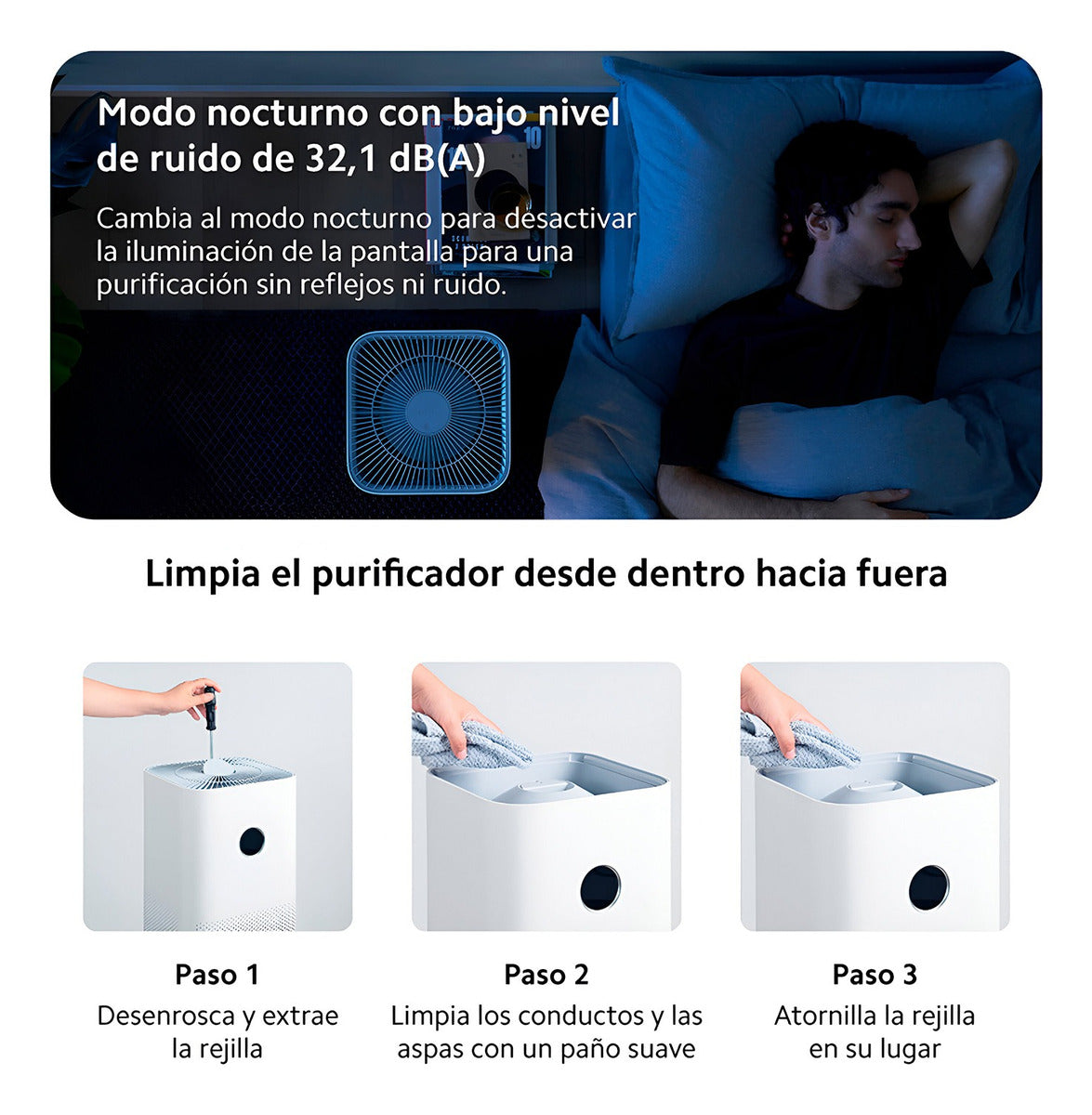 La conectividad inteligente eleva este purificador a otro nivel. Contrólalo desde tu smartphone con la aplicación Xiaomi Home o utiliza comandos de voz a través de Google Assistant o Alexa. Programa encendidos y apagados, cambia la velocidad del ventilador o activa el modo nocturno, todo sin moverte del sofá o incluso cuando estés fuera de casa.