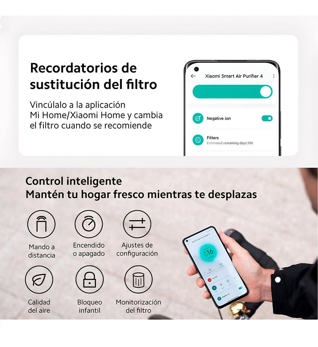 Invierte en tu bienestar y en el de tus seres queridos. Especialmente beneficioso para personas con alergias, asma u otras afecciones respiratorias, el Xiaomi Smart Air Purifier 4 no es solo un electrodoméstico más: es una decisión por una vida más saludable, con cada respiración.