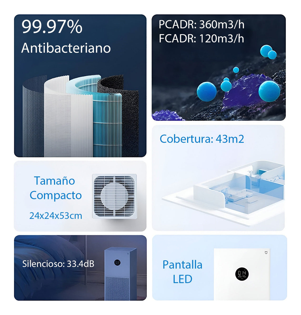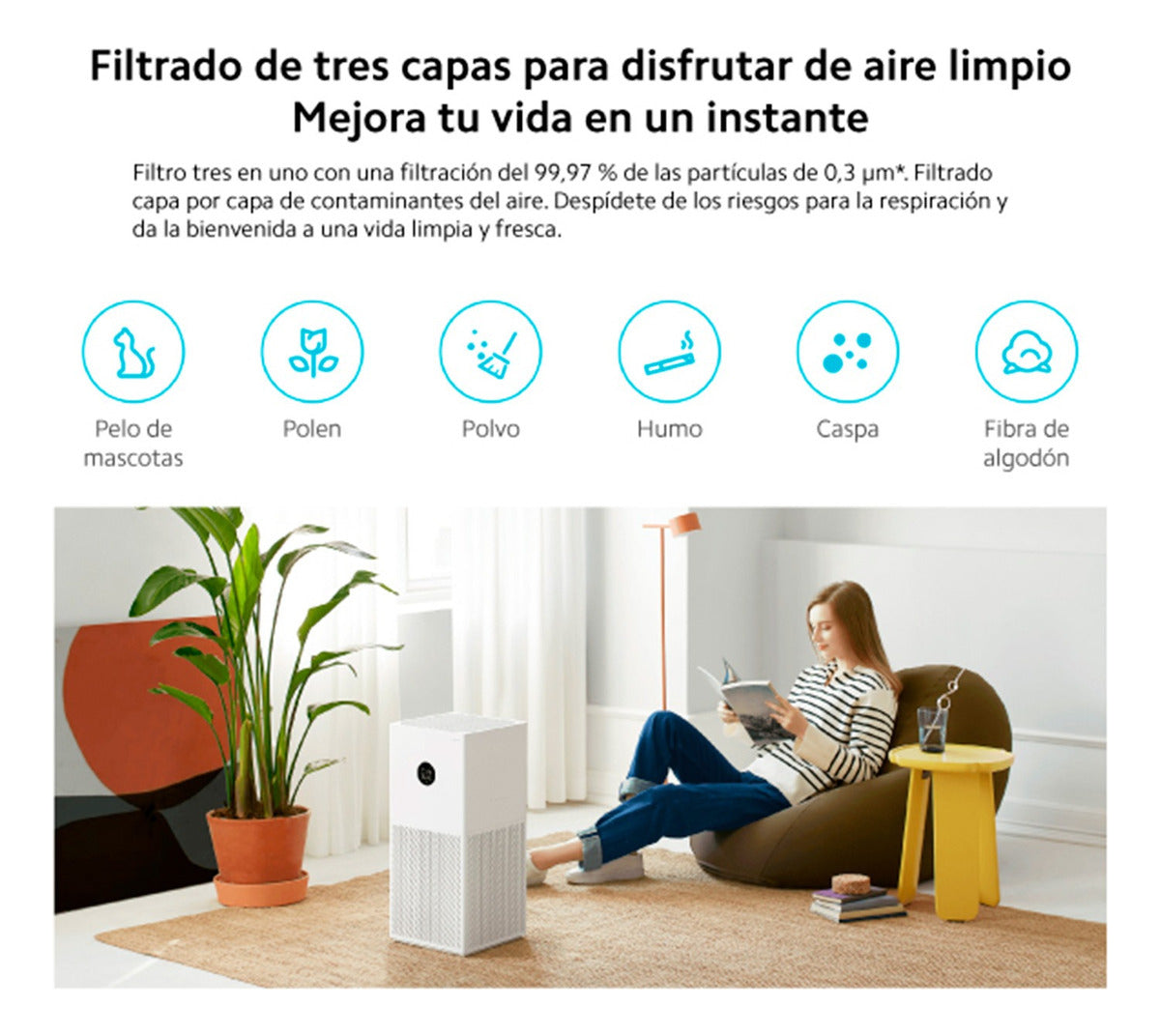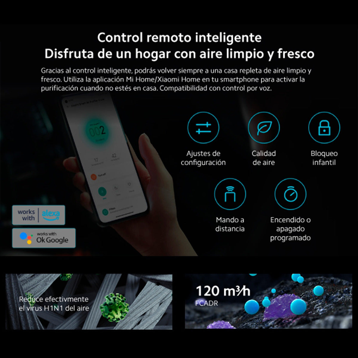 La conectividad inteligente eleva tu experiencia a otro nivel: controla tu purificador remotamente desde la aplicación Mi Home, ajusta configuraciones, programa horarios o recibe notificaciones sobre la calidad del aire estés donde estés. También es compatible con asistentes de voz como Google Assistant y Alexa, permitiéndote controlarlo con simples comandos de voz. Con un consumo energético de solo 32W, este purificador de alta eficiencia cuida tanto de tu salud como de tu bolsillo, reduciendo al mínimo el impacto en tu factura eléctrica.