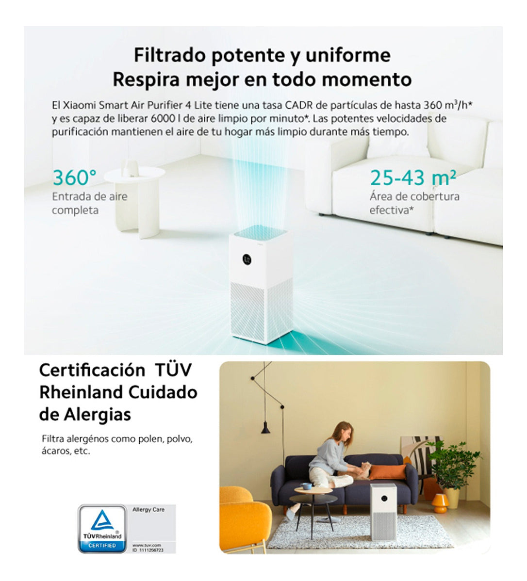 El filtro de larga duración (hasta un año) incluye un recordatorio automático de reemplazo, eliminando preocupaciones sobre su mantenimiento. Elegante, potente y silencioso, el Xiaomi Smart Air Purifier 4 Lite es la solución definitiva para quienes buscan respirar aire limpio y saludable, mejorando significativamente tu calidad de vida y la de tu familia. No esperes más para experimentar la diferencia que hace respirar aire puro en cada rincón de tu hogar.