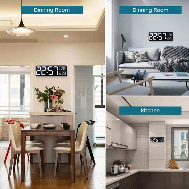 Reloj Pared Digital 40x13cm Dia Fecha Hora Temp Luz Led Blanca