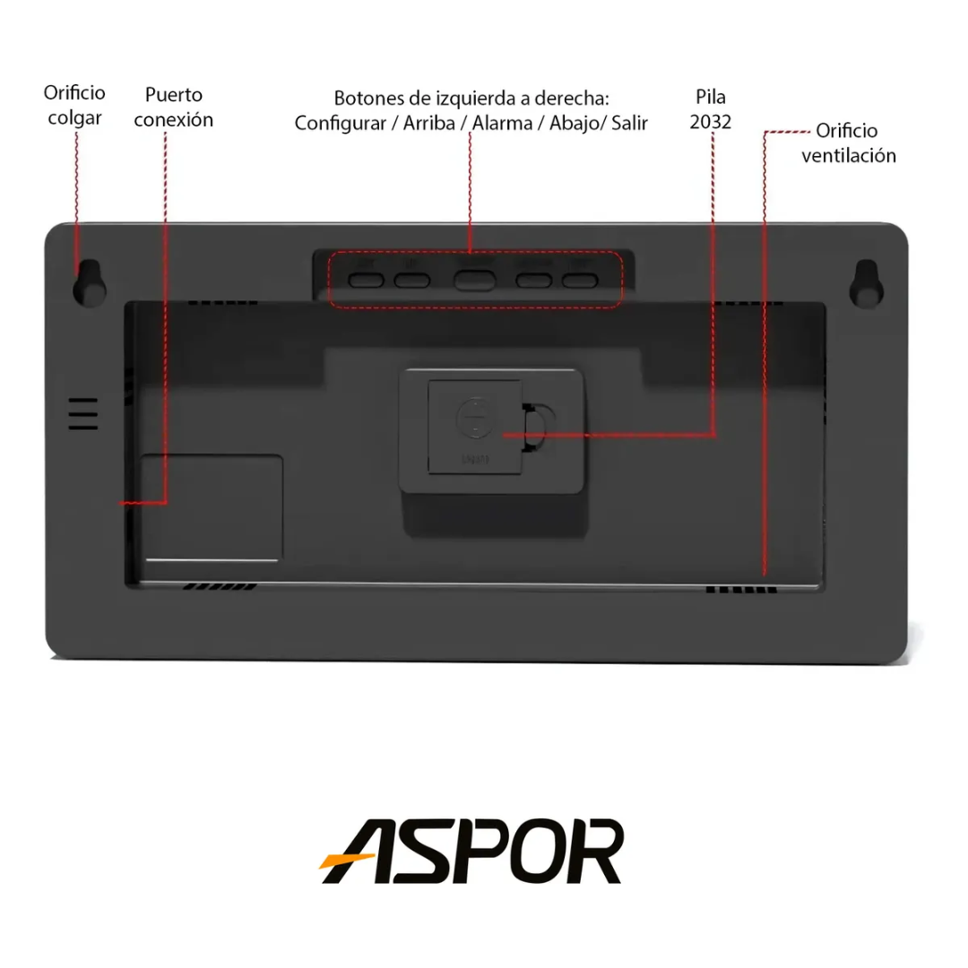 Reloj digital LED con calendario para colgar en pared, números muy grandes y muy visibles, además tiene sensor de temperatura, marca la hora, fecha día, mes y año, también muestra dia de la semana.