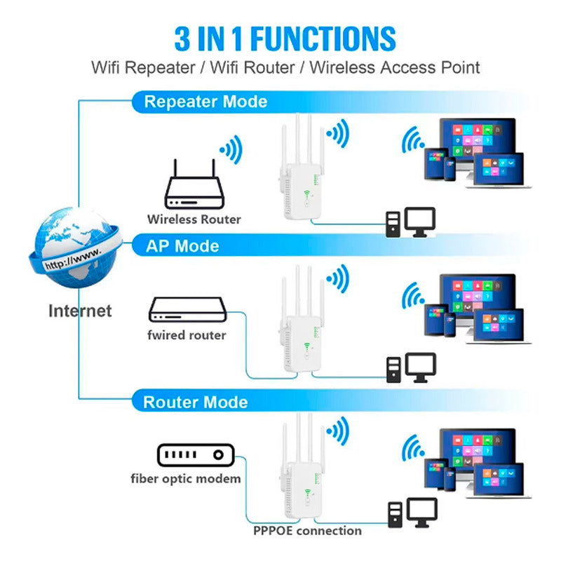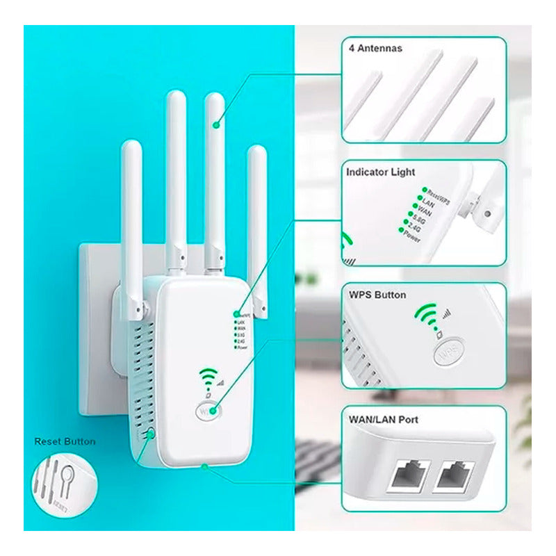 Repetidor Wifi Inalambrico 5 Ghz 1200mbps Wps 4 Antenas