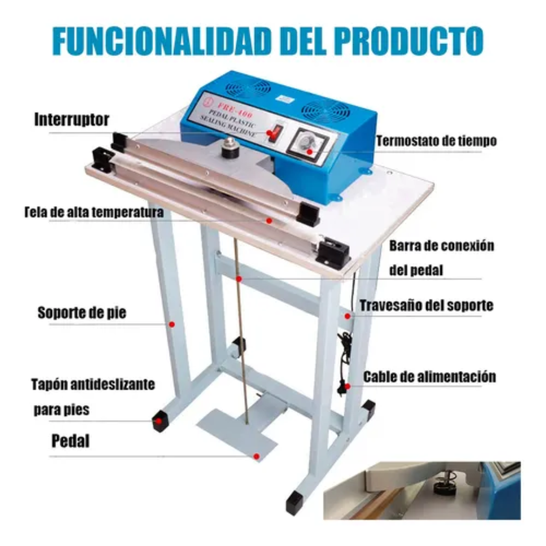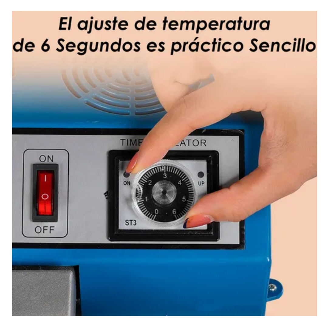 - Tiempo de sellado: Ajustable, 0.2 a 6 segundos.