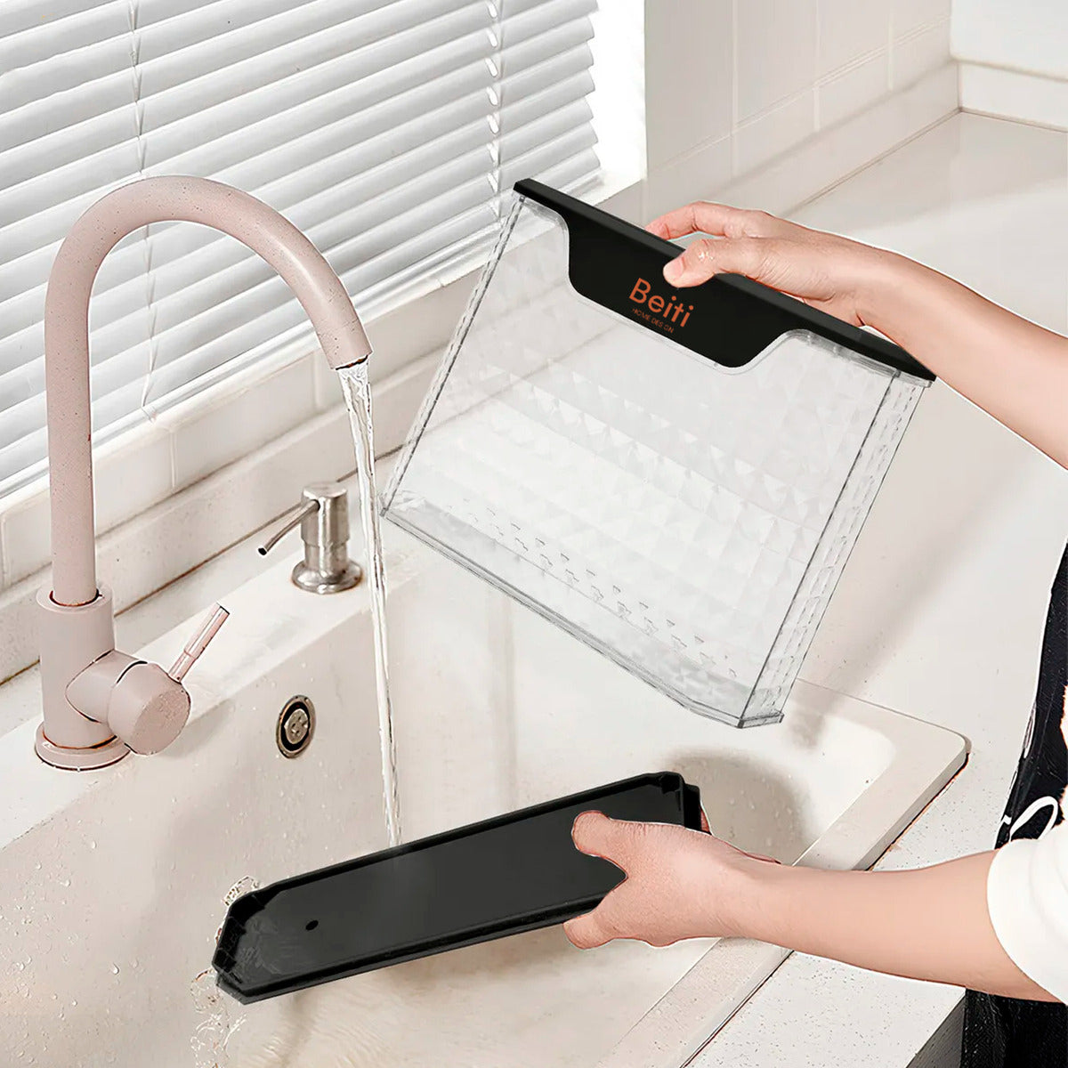 1* caja organizadora con escurridor 27.5*9*22.5CM-Color Negro + Mango Glitter