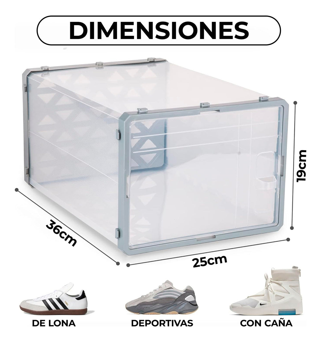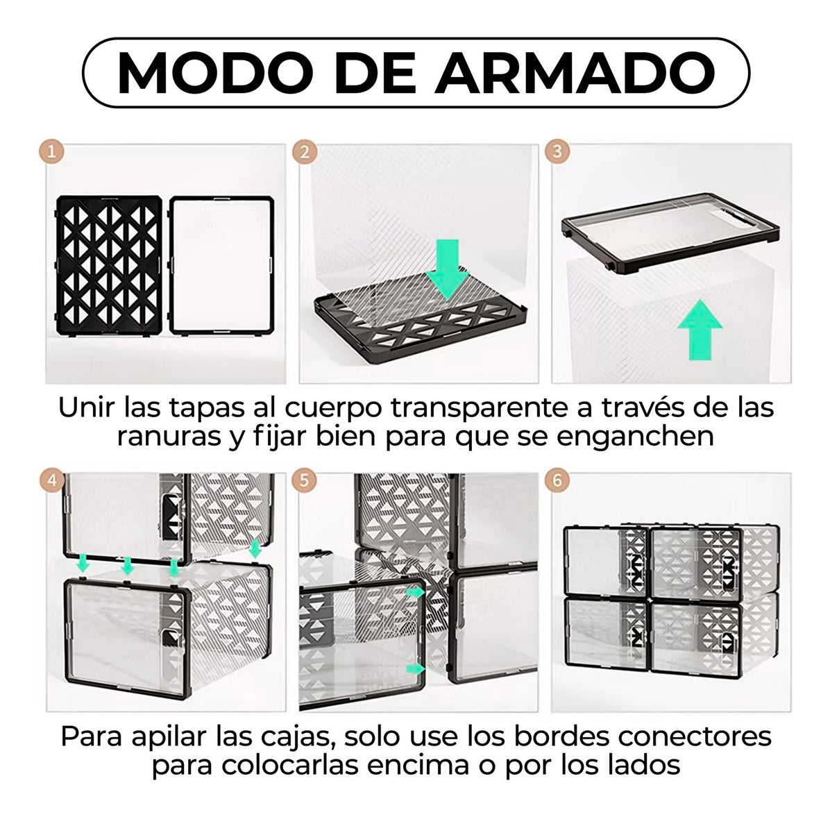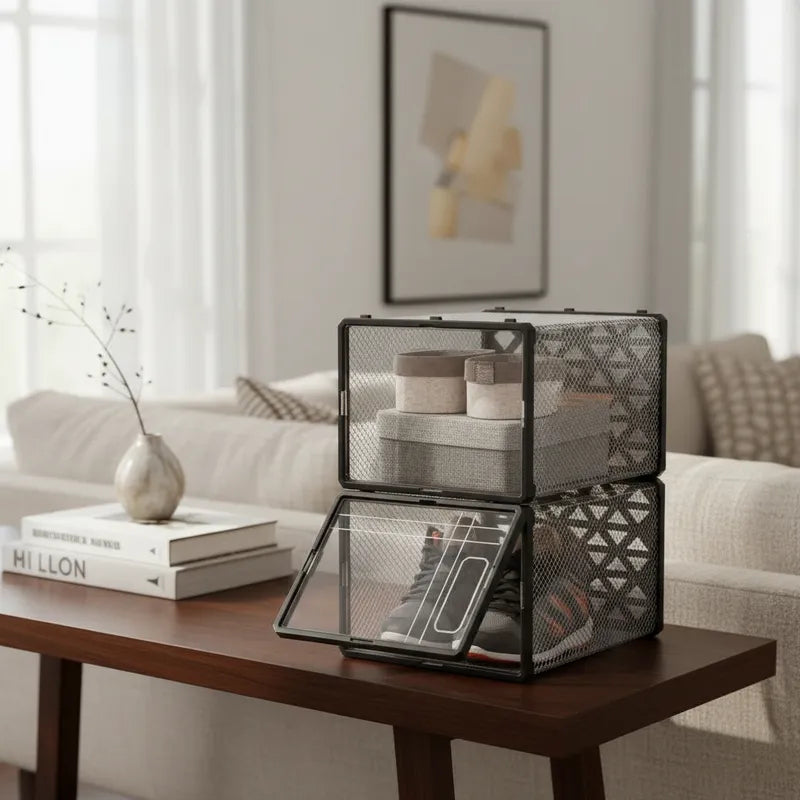 Fabricadas con materiales de alta calidad, estas cajas son duraderas y fáciles de limpiar. Su estructura transparente te permite ver el contenido sin necesidad de abrirlas, facilitando la búsqueda de lo que necesitas. Además, su estilo moderno se integra perfectamente en cualquier ambiente, ya sea en el armario, la entrada o el dormitorio.