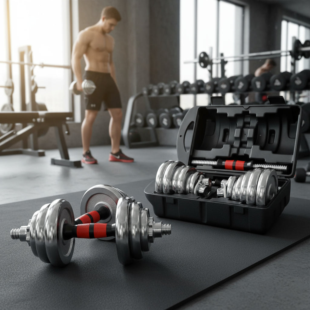 Set De Mancuernas Cromadas Ajustables 20Kg Con Maletin