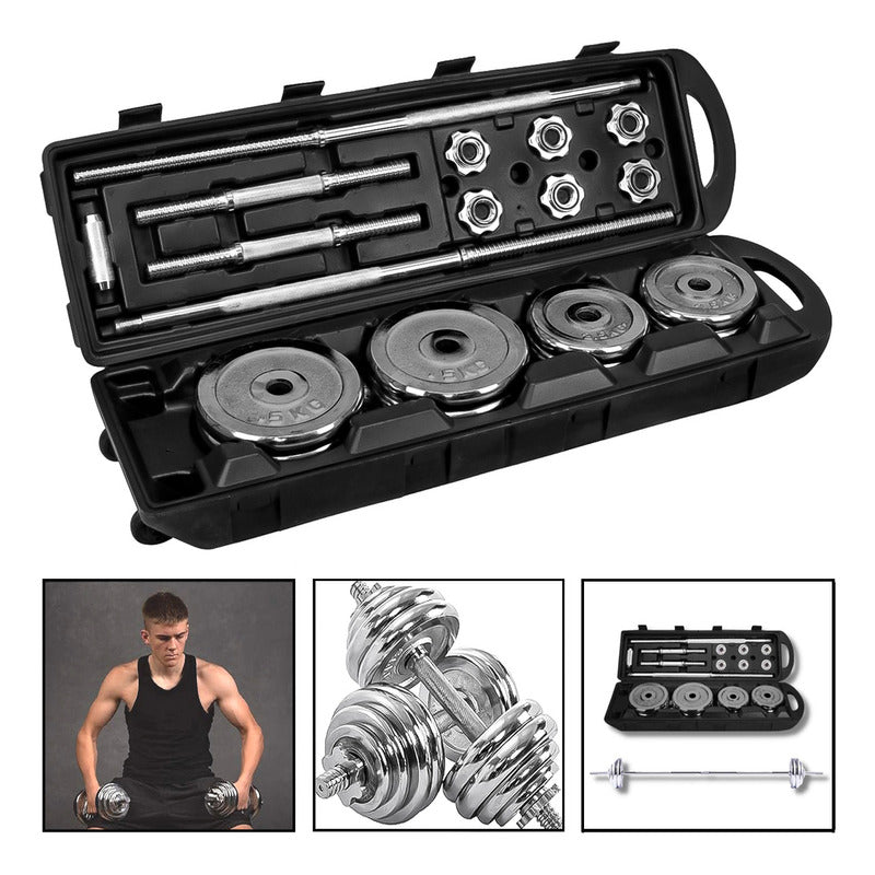 Set Mancuernas Barras Extendibles Kit De 50 Kg Con Maleta