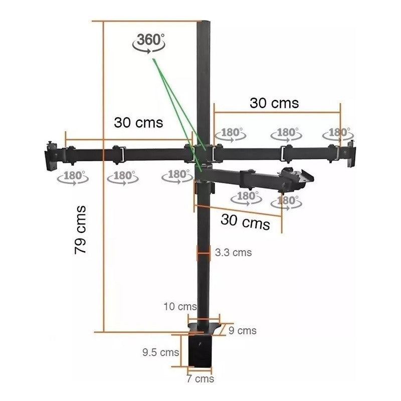 Soporte Escritorio Monitor Notebook Triple 10 a 32 Pulgadas Con Brazo