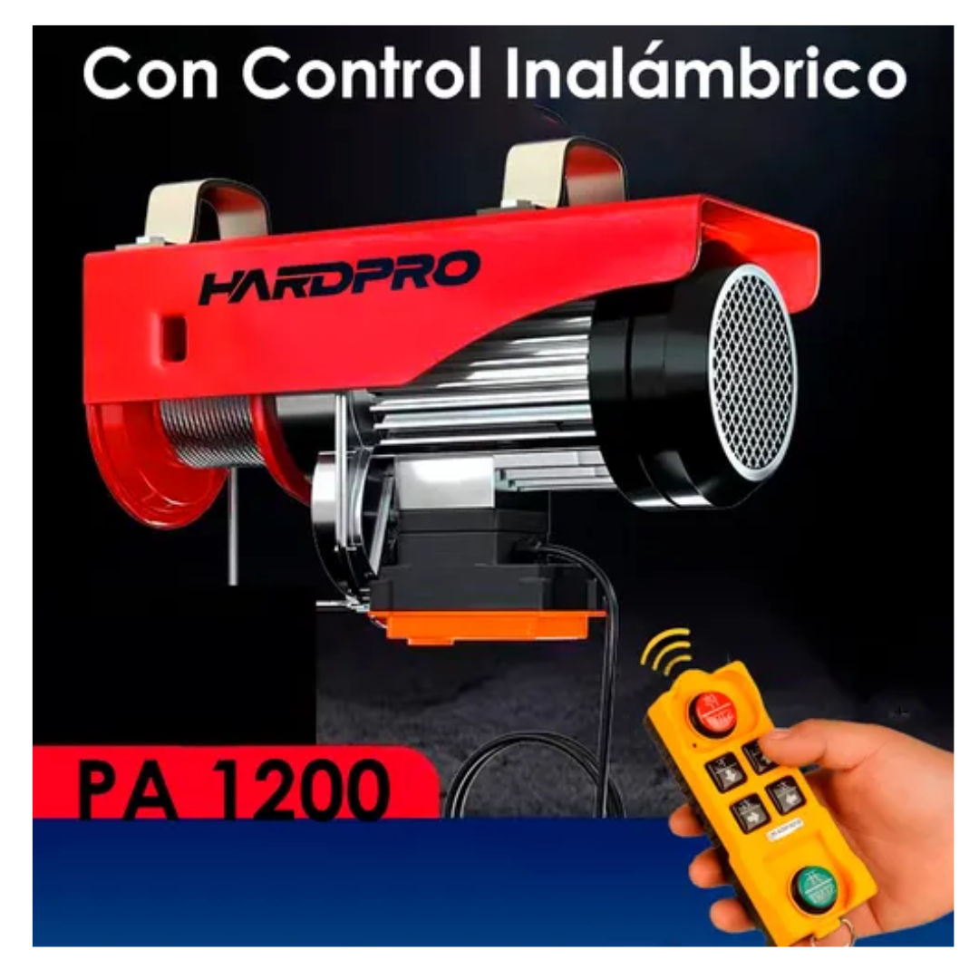 Tecle Eléctrico Inalámbrico 1200kg 12mtrs Cable Acero 1850w