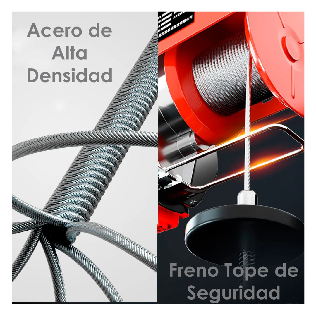 Equipado con un potente motor de 1850W, este tecle eléctrico permite un funcionamiento eficiente tanto en corriente doméstica como en energía industrial. Su construcción robusta, con cuerda de acero, garantiza durabilidad y resistencia ante condiciones exigentes, asegurando un rendimiento fiable en cada uso.
