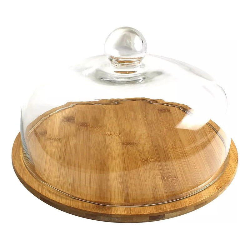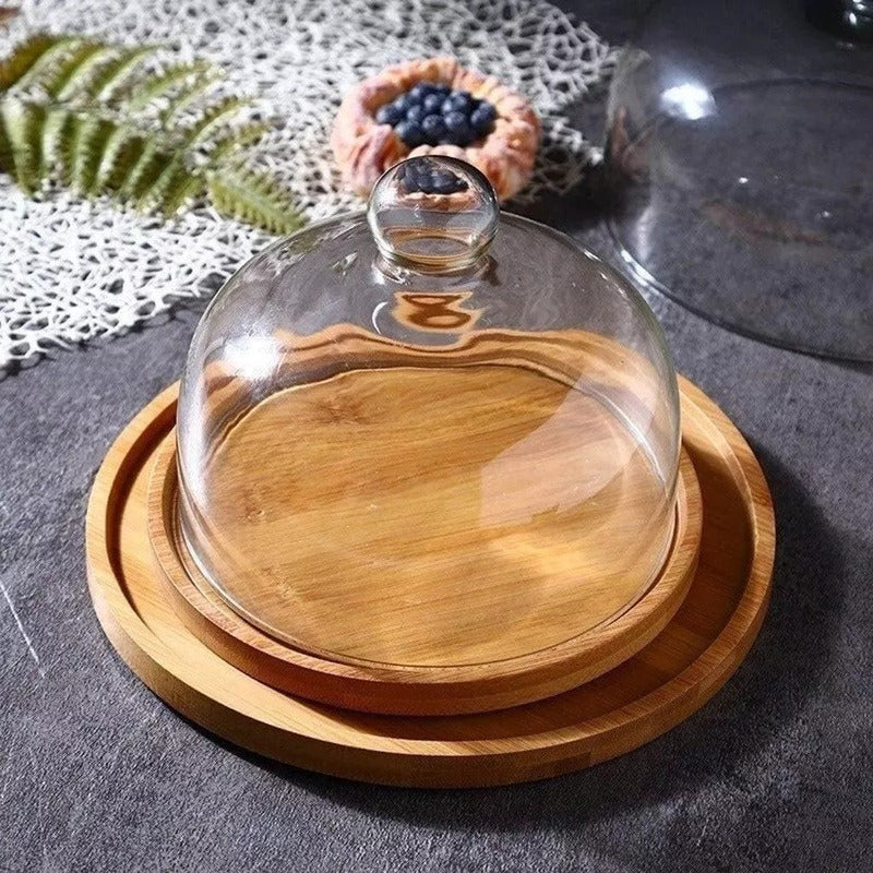 Cubierta de Plastico vintage redonda con bandeja de bambú, superficie lisa, fácil de lavar, ecológico y seguro.
