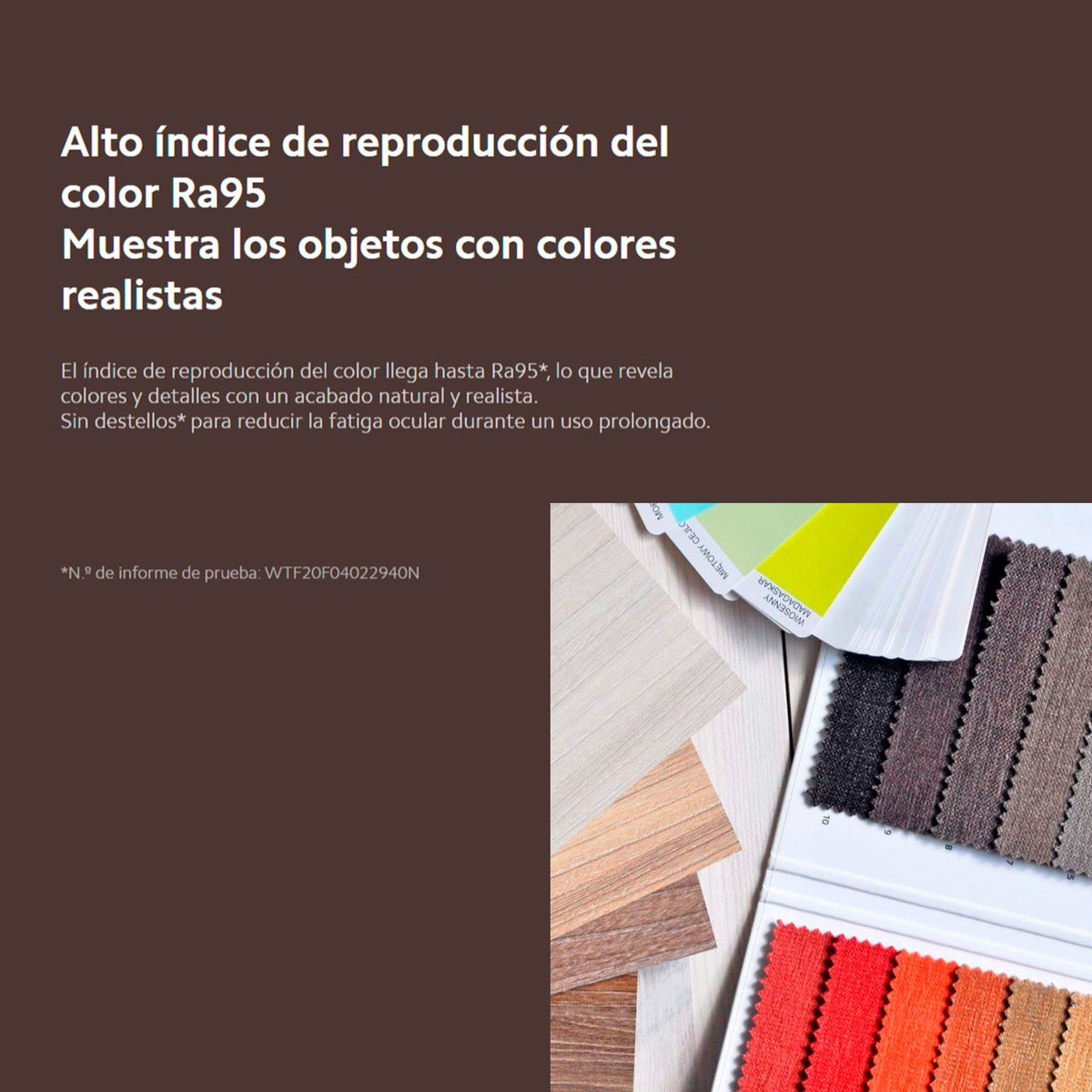 Disfruta de una iluminación superior con su índice de reproducción del color Ra95, que revela colores y detalles con un acabado natural y realista. El innovador diseño asimétrico con cristal óptico personalizado y cubierta de textura fina te permite trabajar durante horas sin preocuparte por molestos destellos o reflejos en la pantalla, protegiendo tus ojos de la fatiga visual.