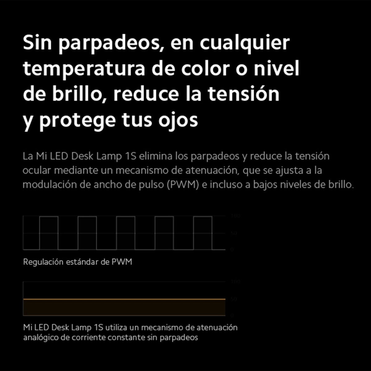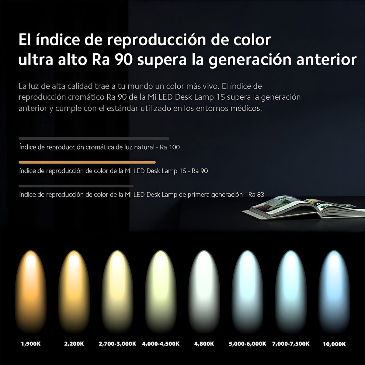 Descubre lámpara de escritorio Xiaomi Mi LED Desk Lamp 1S, una revolución en iluminación inteligente que transforma tu espacio de trabajo en un oasis de confort visual y tecnología del más alto estándar. Imagina una lámpara que no solo ilumina, sino que cuida de tus ojos con una precisión milimétrica, ofreciendo una experiencia de luz tan natural que te hará olvidar que estás bajo una fuente artificial. Con su impresionante rango de temperatura de color entre 2600K y 5100K, esta lámpara reproduce la luz más cercana a la luz natural, permitiéndote trabajar, leer o estudiar con una claridad y nitidez que protege tu vista hasta en los momentos más exigentes.