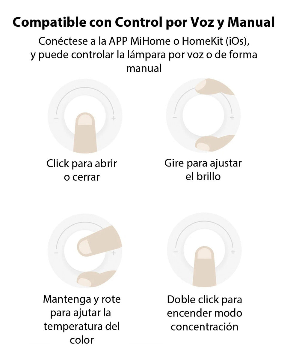 - Admite comandos de voz Xiaomi, Google Assistant, Alexa y Siri para ajuste de brillo y temperatura del color