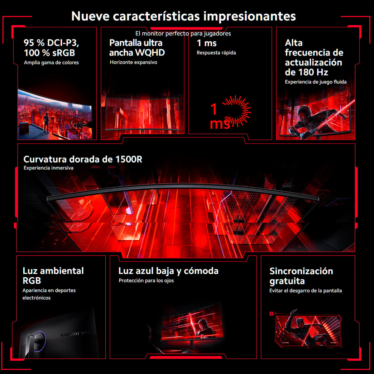 Xiaomi Monitor Curvo Gamer G34wqi 34 2k Ultrawide 180hz Negro