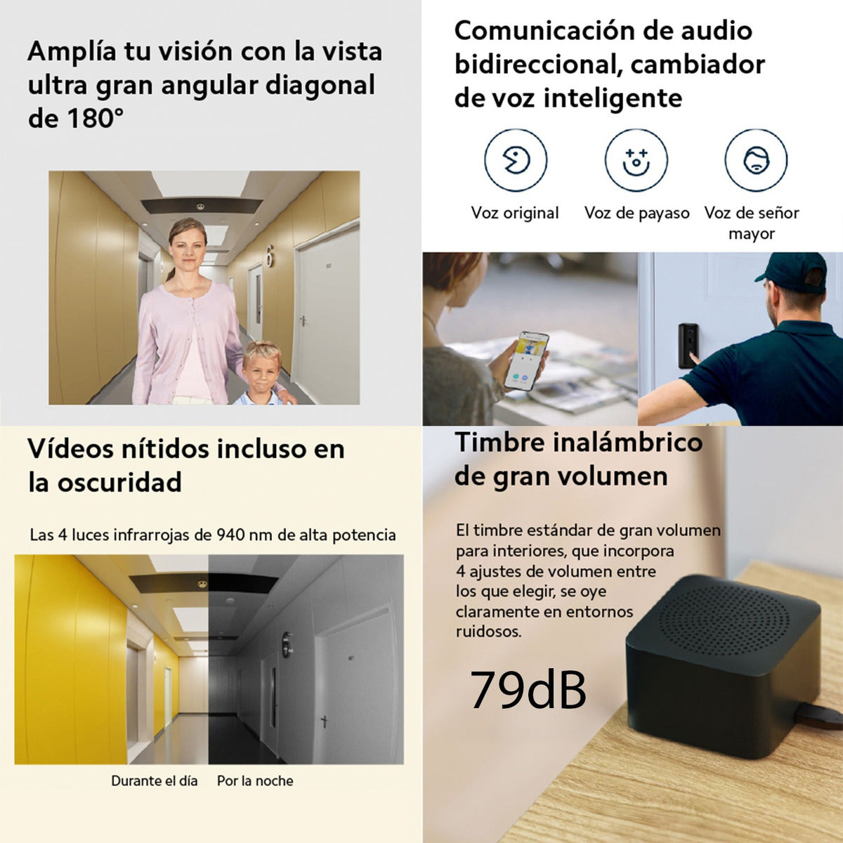 Xiaomi Smart Doorbell 3 Timbre Inteligente Wifi Batería Negro